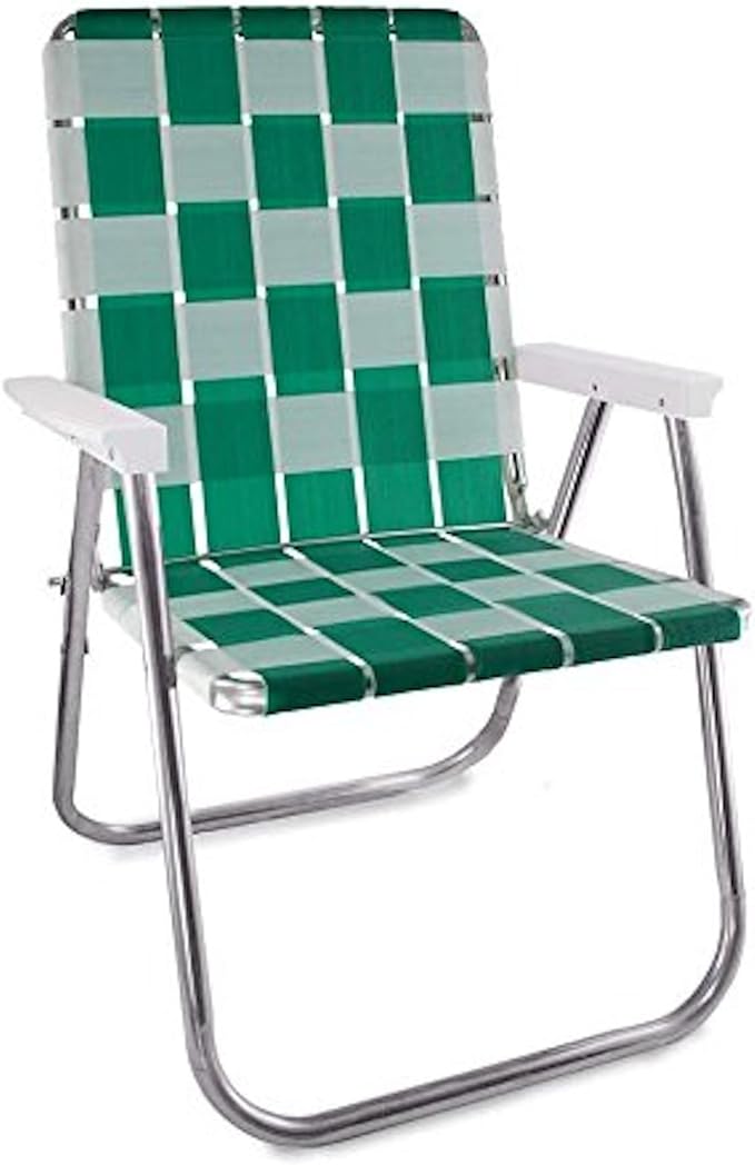 Lawn Chair USA Folding Aluminum Outdoor Patio Lawn Chair | Heavy-Duty Webbed Chairs for Camping, Sports, Beach, Yard & Tailgating | Lightweight Portable | Classic - Green/White