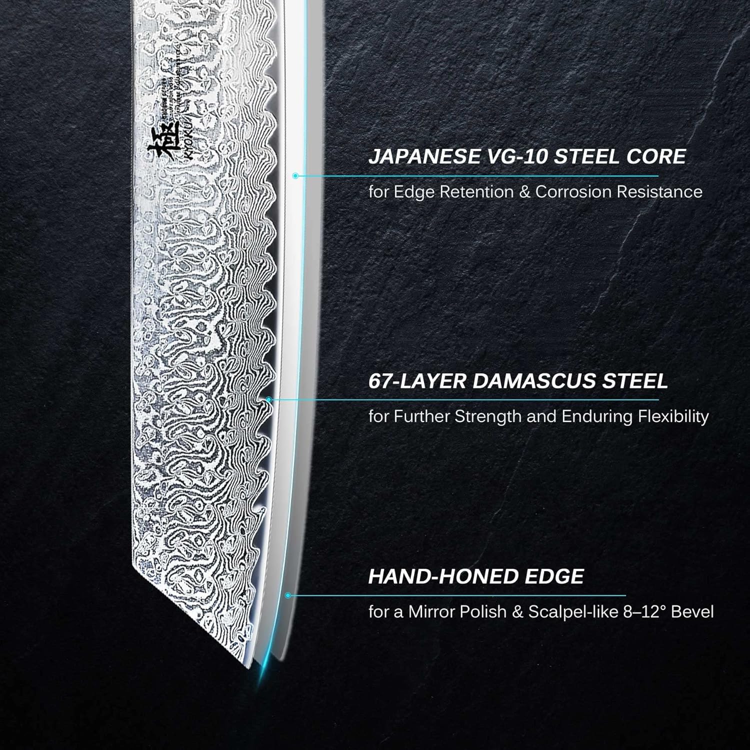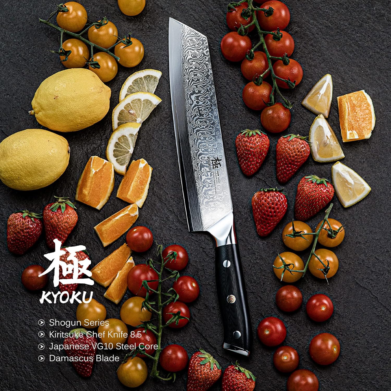 - 8-1/2" KIRITSUKE KNIFE: This Kiritsuke knife is part of Kyoku's premier Shogun series, manufactured with modern technology and traditional craftsmanship; its Japanese 67 layer Damascus VG-10 steel blade has been cryogenically treated and paired with a perfectly balanced handle offering superior precision and control for home chefs and culinary professionals alike