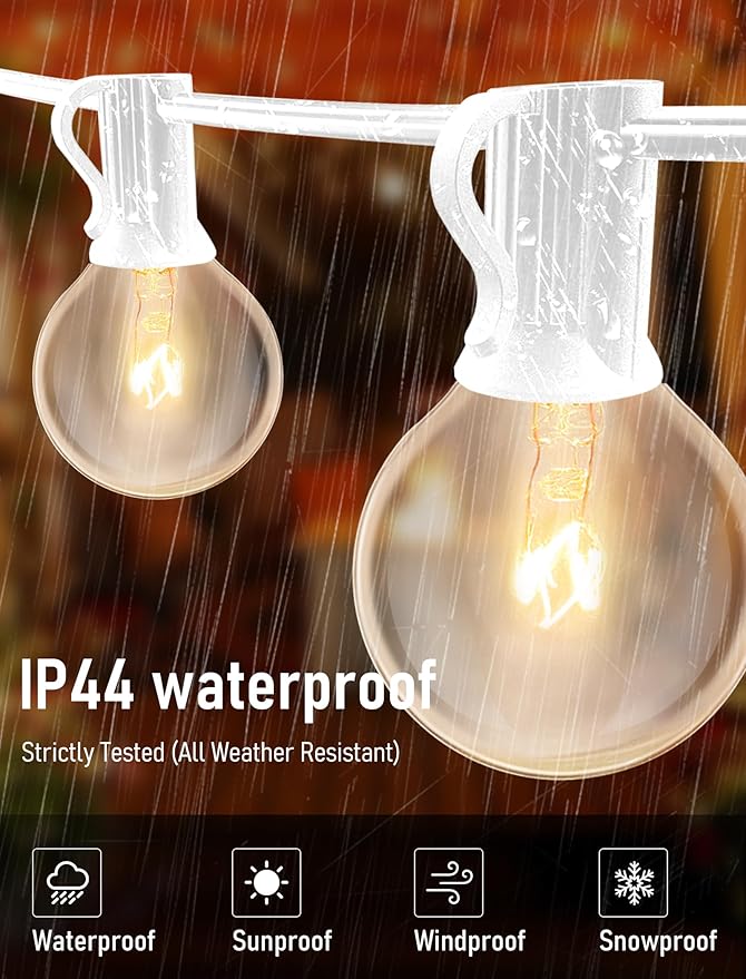 - Our white string lights cast a warm light that can creates a cozy, romantic atmosphere and makes you feel relax in your backyard after a busy work.Suitable for indoor/outdoor lighting applications. Fits great for patio, backyard, deck, bistro, café, pergola, garden, market, wedding party,Christmas decoration and many other occasions or events