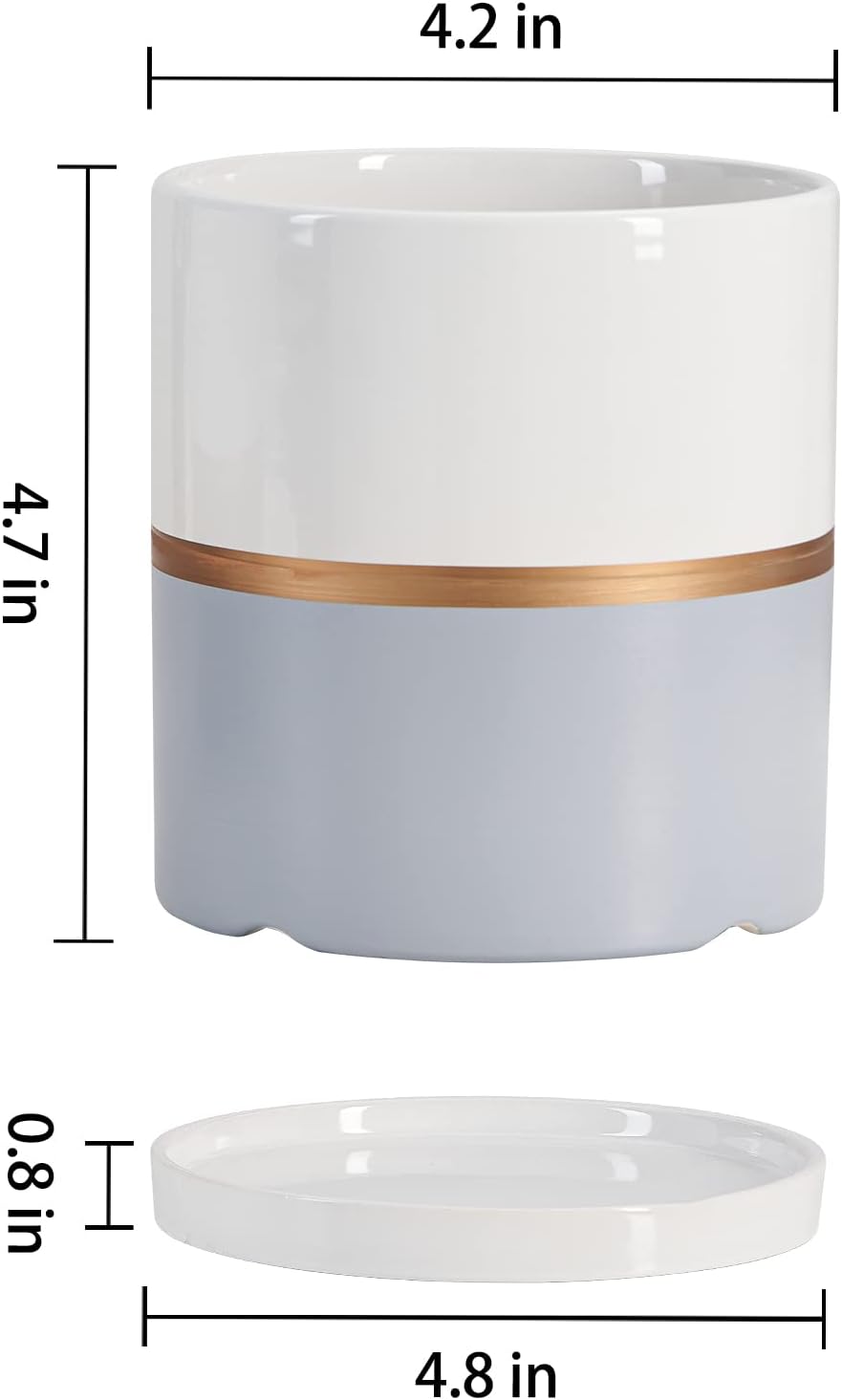 Ekirlin 4 inch Plant Pot - Ceramic Flower Planters Indoor - Modern Succulents Containers with Drain Hole Saucer, Decorate Home, Office & Outdoor (Grey)