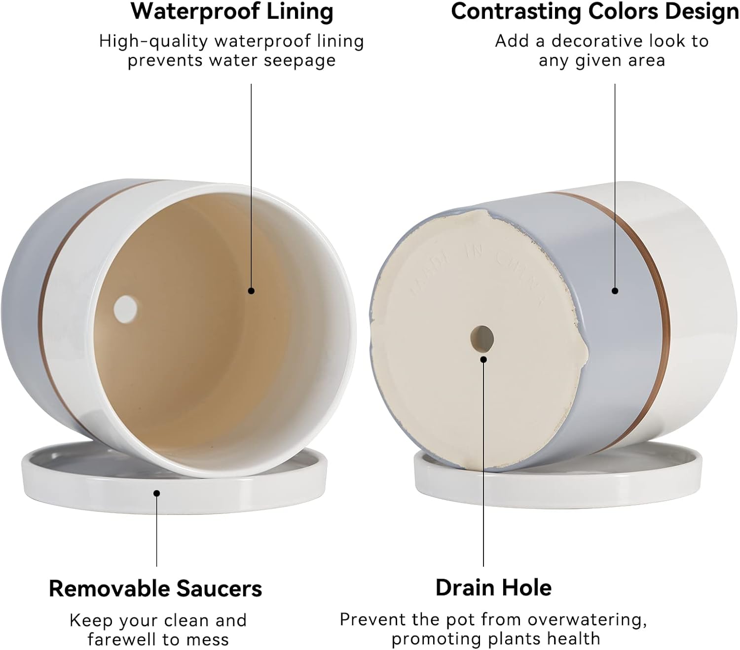 - 【Premium Ceramic Material】 Ekirlin plant pots are stoneware baked at high temperatures, so they can withstand extreme temperatures. Manufactured through appropriate synergy between traditional manual techniques and ergonomics, from the top to the bottom, these flower pots show elegant and natural lines