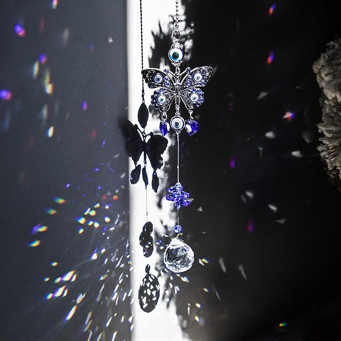 - Blue Evil Eye and Butterfly Hanging Crystal Ornament for Home Decoration to Bring Luck and Happiness