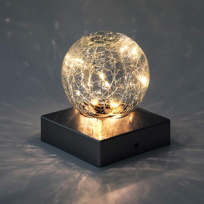 - PRODUCT SPECIFICATIONS: 10 pcs copper wire LEDs in each post cap light with an appealing crackle glass design, it makes your home stand apart. All the post lights are made by high efficient solar panels and high quality crystal glass.
