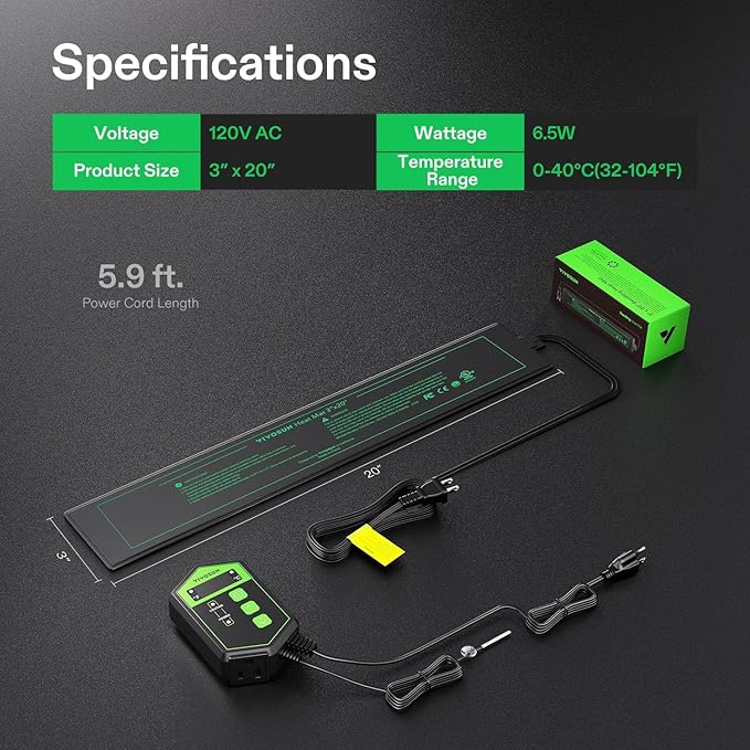 - Innovative Heating: With the radiate far-infrared light wave, this seeding heat mat makes the heat source softer and provides enough heat, which can be heated up to 40 ℃(104℉)at an ambient temperature of 20-25 ℃(68-77℉)in minutes; We recommend using it with the VIVOSUN thermostat controller and humidity dome
