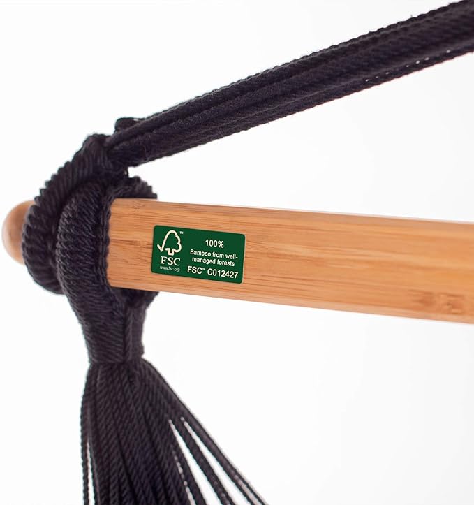LA SIESTA® - Large Comfort Habana Cotton Hammock Chair & CasaMount - Hanging Chair w/Suspension Kit for Walls Ceilings & Square Beams - Indoor Outdoor Swing Hanging Chair Bedroom Balcony - Onyx