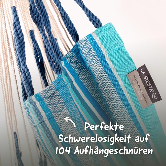 LA SIESTA® - Large Comfort Habana Cotton Hammock Chair & CasaMount - Hanging Chair w/Suspension Kit for Walls Ceilings & Square Beams - Indoor Outdoor Swing Hanging Chair Bedroom Balcony - Azure