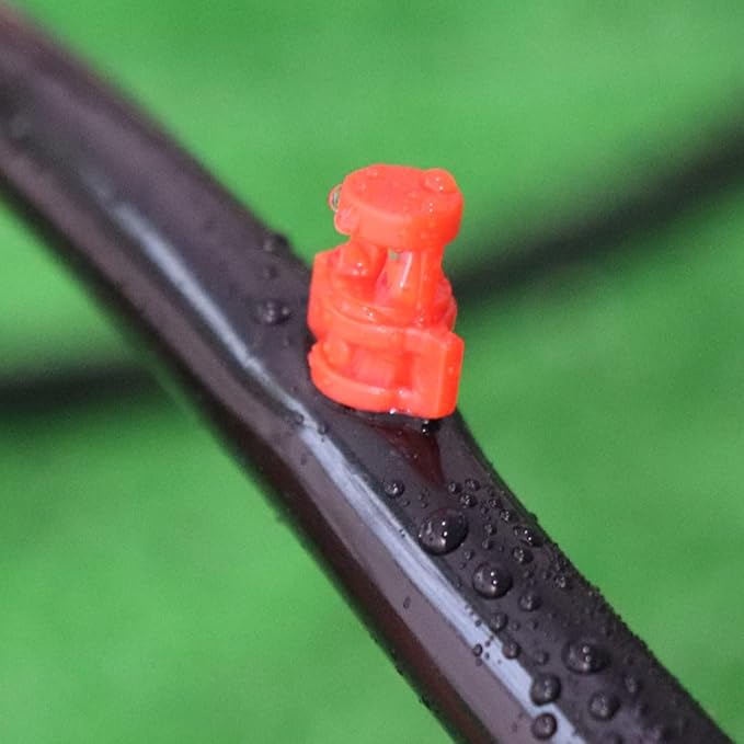 MroMax 25Pcs 360 Degree Micro Sprayer Automizing Sprinkler Nozzle Hydroponic Aeroponic Misters Fan Jet for Miniature Garden Lawn Plant Irrigation System Red