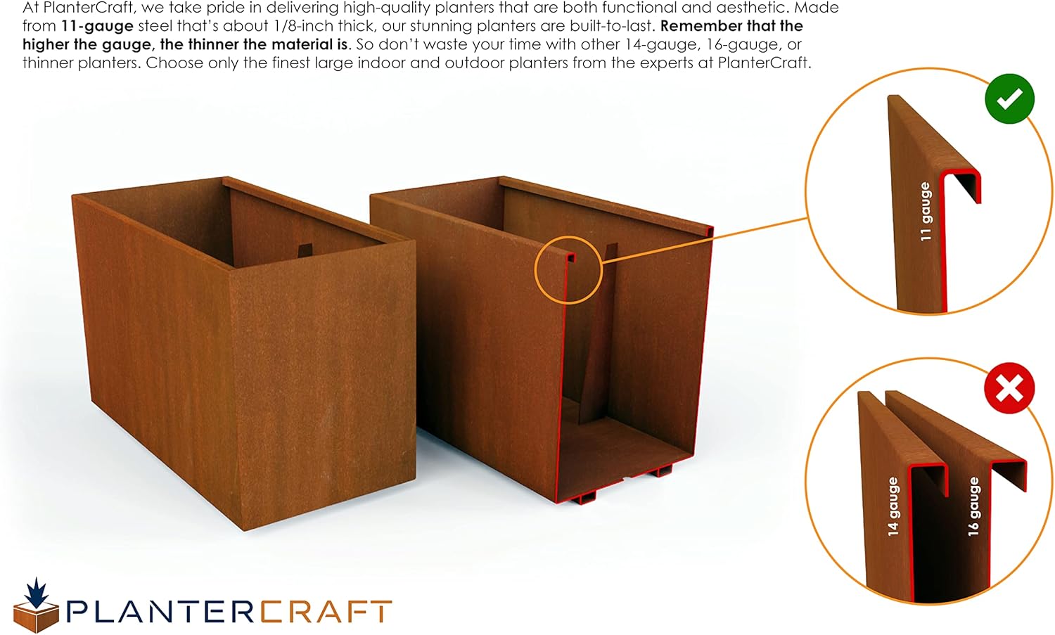 - HEAVY-DUTY AMERICAN CRAFTSMANSHIP: Proudly crafted in the USA from a single piece of thick, 11-gauge Corten steel. This commercial-grade construction ensures extreme durability against all weather conditions, cracking, and bowing, making it a superior choice among large outdoor planters.