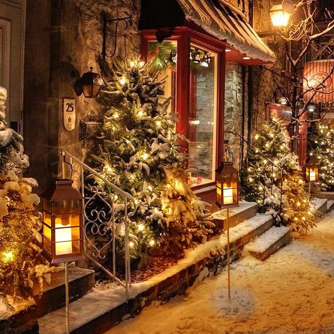 2 Pack Christmas Solar Lantern,Outdoor Garden Hanging Lantern-Waterproof LED Solar Lanterns Plastic Flickering Flameless Candle Mission Lights for Christmas Table, Outdoor, Party Decorative (Bronze)