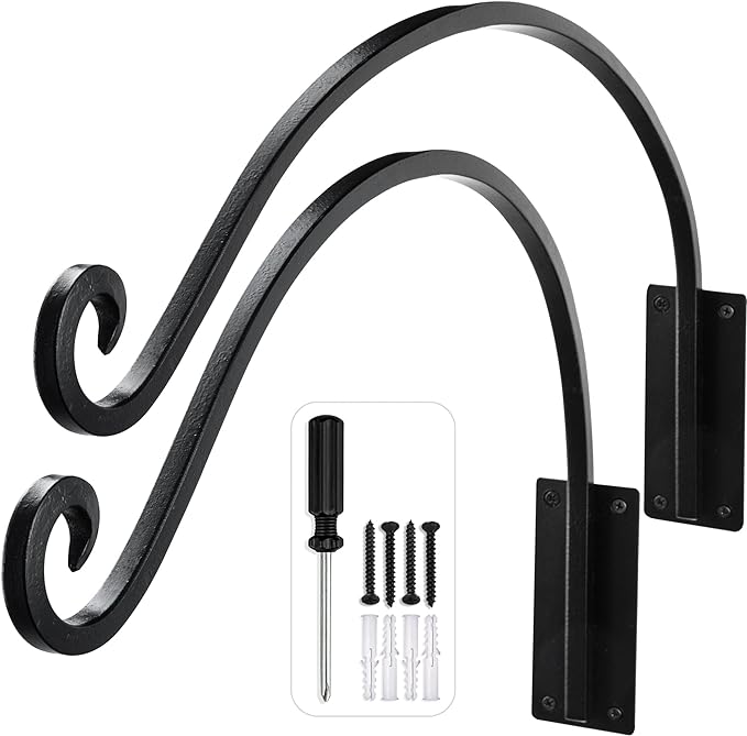 - HEAVY DUTY DESIGN: Our hanging plant bracket are made of heavy duty steel, this large wall mount plant hook can easily hang up to 80 lbs for flower baskets, wind chimes and more, ensuring stability and safety for your baskets and items.