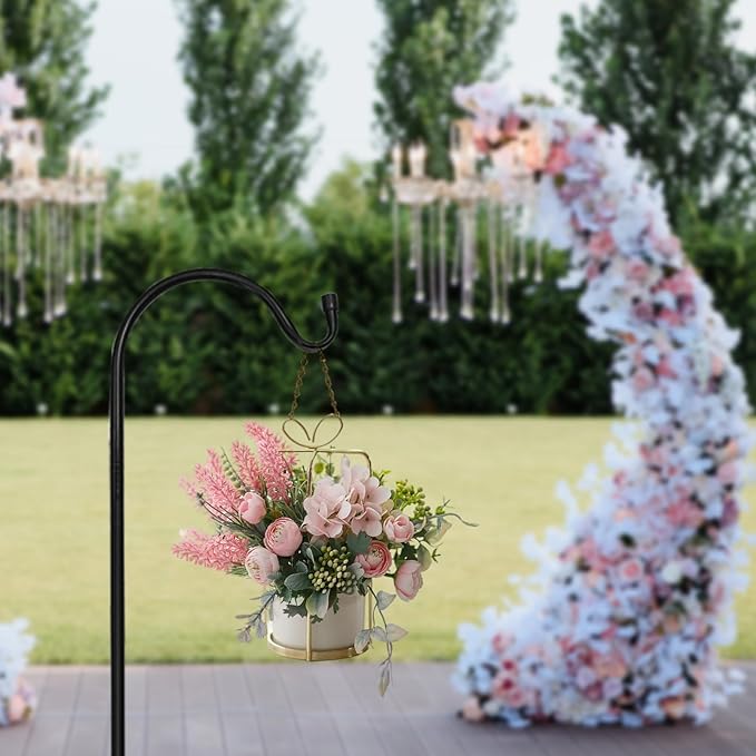 - Multiple applications of shepherd hooks: Garden shepherd's hooks are suitable for outdoor wedding aisles, and can also be used to hang flower pots, bird feeders, solar lights, lanterns, flower pots,decorations, flower balls, garden lights, glass bottles, holiday decorations, string lights, bird baths, plant racks and other garden decorations