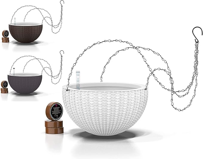 - Coco pellets included! Our hanging plant holder kit comes with 3 coco soil pellets containing organic, all-natural coco fibers that aerate the soil around plant roots to prevent root rot and supply the correct amount of moisture – without overwatering. Our self watering pot comes with everything you need to set up your indoor plant pot – planter pot, inner basket, bag, hanging chains, step-by-step instructions, and even a growth tracking device to track your hanging plant pot progress!