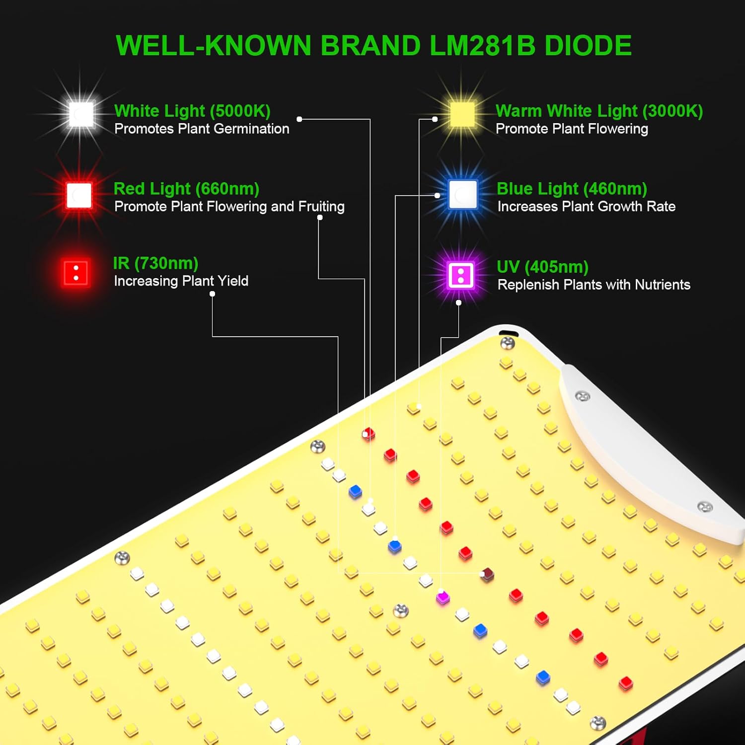 - AMAZING HEAT DISSIPATION & WORKING QUIET - LED light board style and aluminum material can help quickly heat dissipation, reduce the light lost in walkways and walls, increase the light intensity, ensure longer lifetime and lower energy bill. With no fan design, the led grow light full spectrum can provide a quiet working environment without interruption.