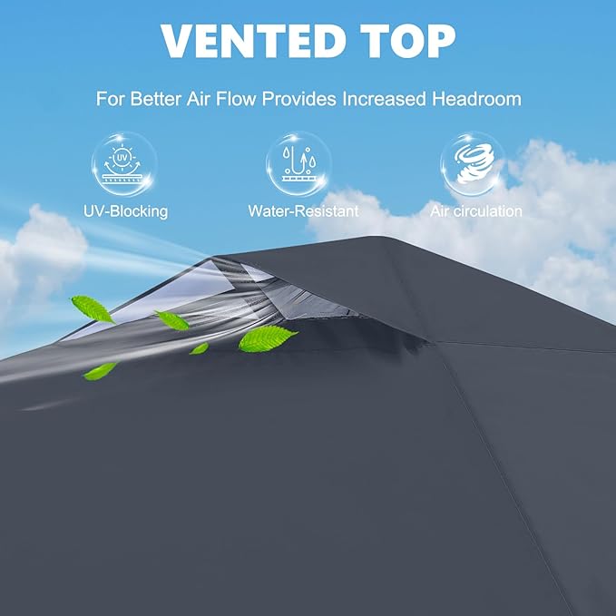 - Canopy Materials: Polyester fabric, inside coated by PU. Professionally protect you from sun, wind and rain with 100% water-resistant and 50+UV protection fabric and heat sealed seams.