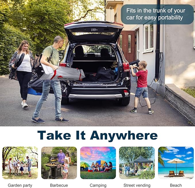 - Canopy Materials: Polyester fabric, inside coated by PU. Professionally protect you from sun, wind and rain with 100% water-resistant and 50+UV protection fabric and heat sealed seams.