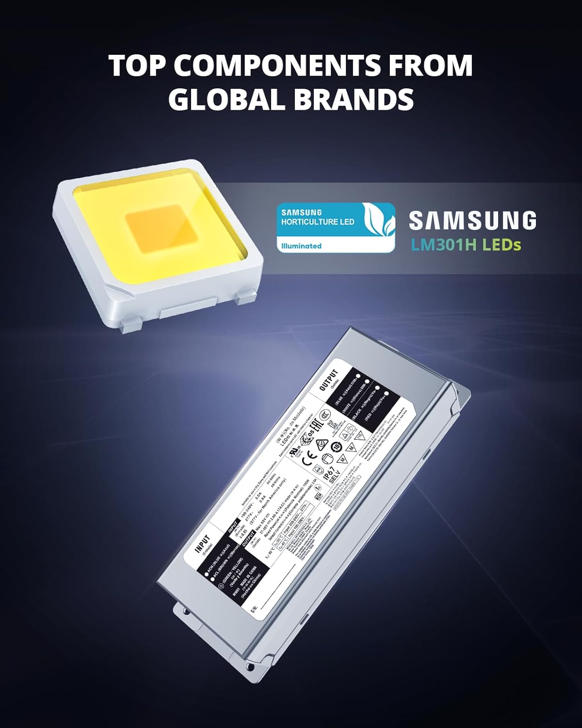 - Top 3x3 Grow Light:With Samsung LM301H diodes featuring upgraded scientific distribution for more even PAR map & deeper canopy penetration; daisy chain max 20pcs XS1500 for commercial, horizontal or vertical farming, greenhouse planting and hydro growing