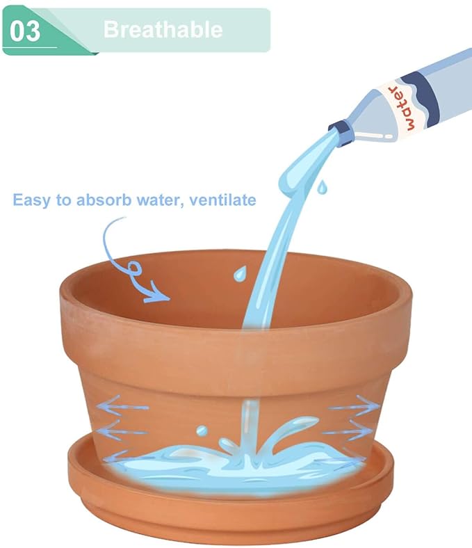 - Quality Materials: Terra cotta pots Making from high-quality clay through high-temperature baking, the walls of the pots draw the water out of the soil to help the soil dry quicker.
