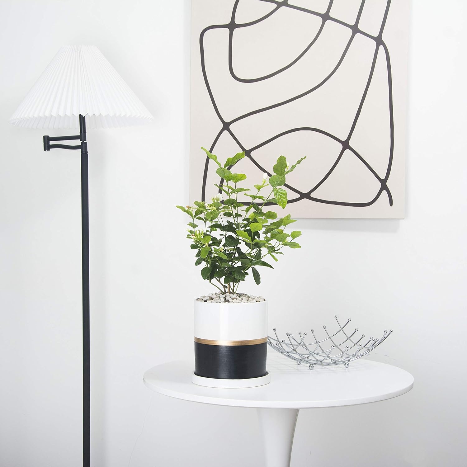 Ekirlin 6 inch Plant Pot - Ceramic Flower Planters Indoor - Modern Succulents Containers with Drain Hole Saucer, Decorate Home, Office & Outdoor (Black)