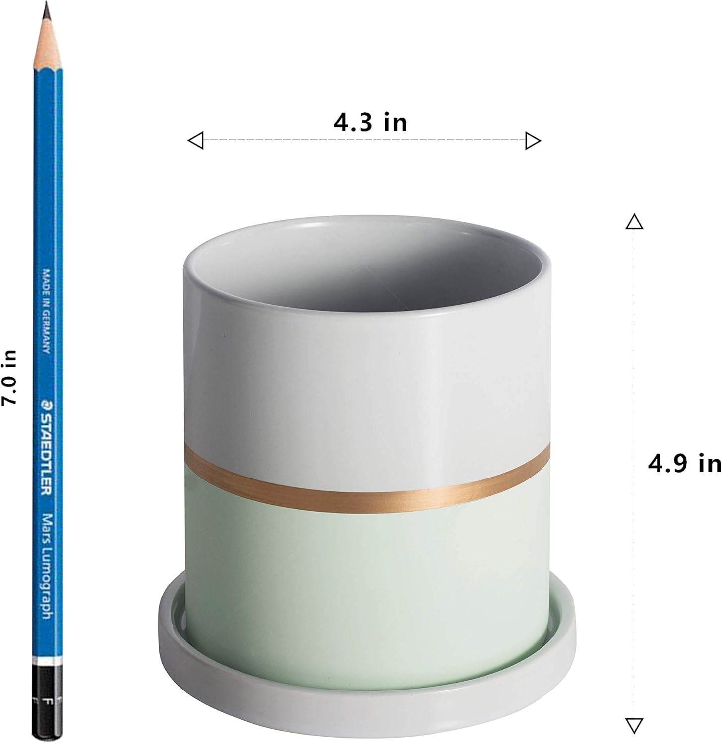 Ekirlin 4 inch Plant Pot - Ceramic Flower Planters Indoor - Modern Succulents Containers with Drain Hole Saucer, Decorate Home, Office & Outdoor (Green)