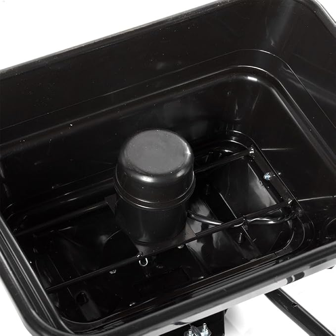 - DURABLE LAWN EQUIPMENT: This heavy-duty spreader is built with an 80 LB load capacity and a 12 FT broadcast width. The 12-volt motor is vinyl-coated for added durability and longevity.