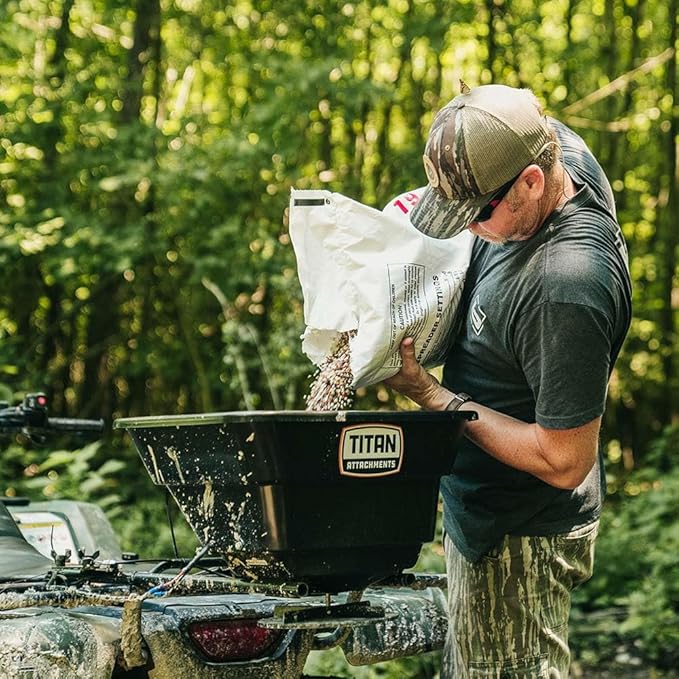 Titan Attachments 12 Volt ATV/UTV Broadcast Spreader, 80 LB Capacity, Back or Front Mounting for ATV, UTV, Or Utility Tractor, Lawn and Garden Seed Spreader with Rain Cover