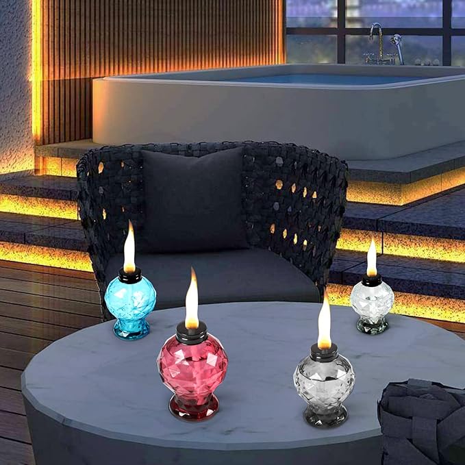 - Easy to Refill: Open the glass table torche cap and add torch oil, which can be refilled and used again. Please use the lid to extinguish the glass table torch flame