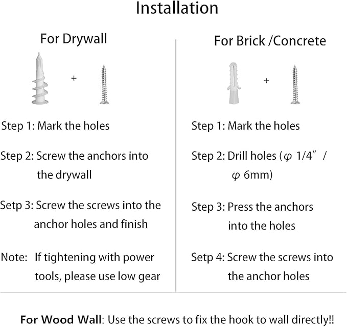 - EASY TO INSTALL- Sets come with all the necessary hardware to install quickly, and securely. Can installed on Brick, Drywall, Wood, and Concrete Walls etc.