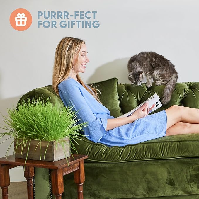 - Part Cat Grass, Part Decor: Our rustic wood planter is a lovely addition to any home. The purrfect cat gift for cat moms everywhere, our simple and elegant cat grass growing kit keeps your house looking greener and cleaner.