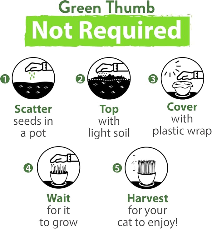 - Premium Seeds Just for Your Cats - These greens are great for digestion, preventing hairballs and are chockfull of amino acids and fiber, and also keep your cats away from chewing house plants (which may not be safe).