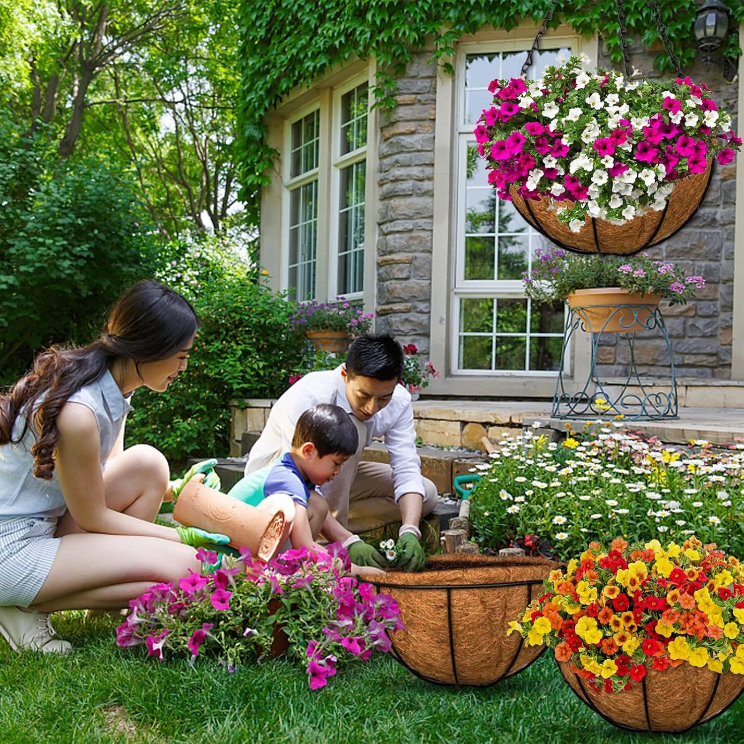 - Application: Coco hanging planter is a hit choice for grower enthusiast, not only can used for gardening, balcony, patio, porch, lawn, eaves, living room, office, etc, which are beneficial to the thriving growth of plants, also can be as house furnishings, but can used for shopping malls, cafe, restaurant, bookstore as ornament that match with flowers