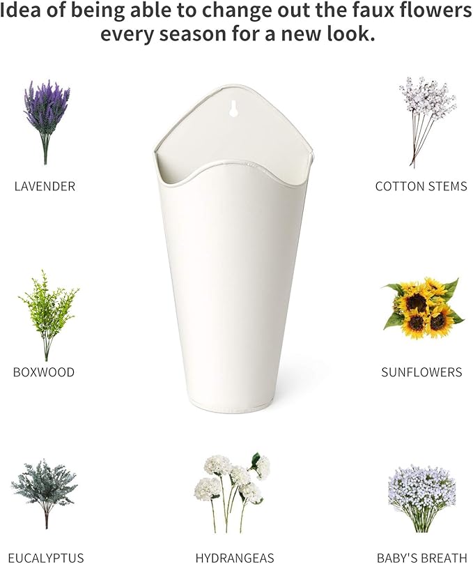 - MULTIFUNCTIONAL DECOR PURPOSE: Galvanized Metal Wall Plant Container Rustic wall decor in your home, planters are great for displaying artificial greenery plants, faux flowers,seasonal decorations, lavender,foliage,eucalyptus plants, or cotton,ideas are endless.