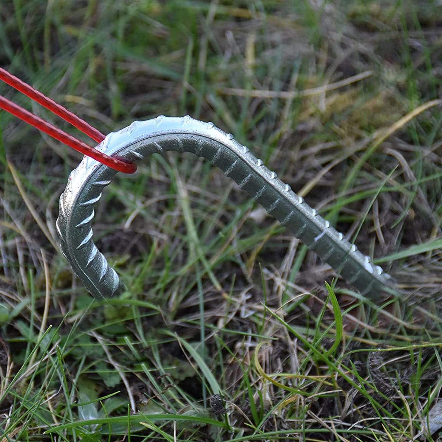 - STRONG GRIP - The U-shaped anchor features a spiral pattern that provides a secure hold, preventing it from being pulled out even in extreme weather conditions like strong winds or hurricanes. It ensures tents, trampolines, and canopies stay firmly in place, even on windy and rainy days.