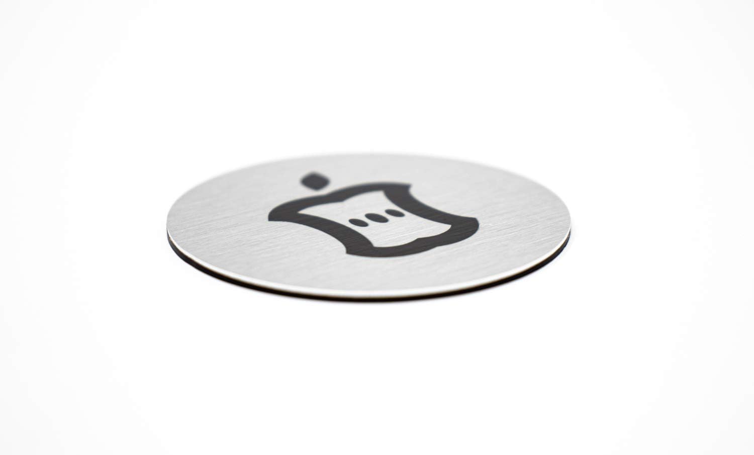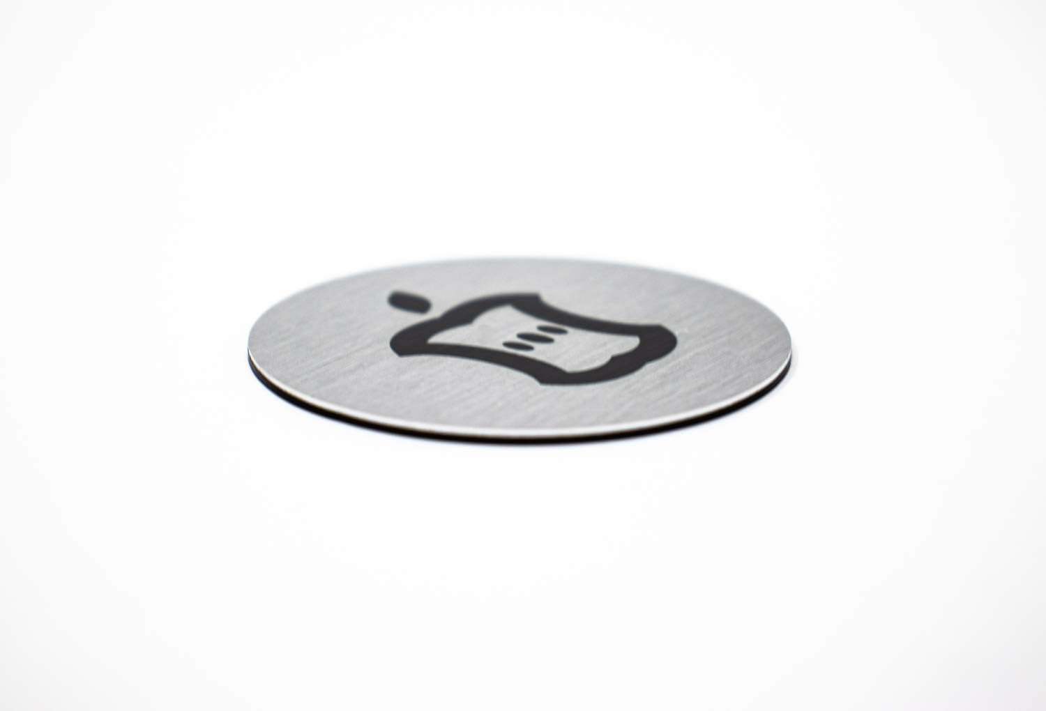 Metal Compost Sign | 2” Round, Compost Bin Label for Waste Basket | Brushed Silver Aluminum with Black Compost Symbol | Environment Signs | Ready to Hang