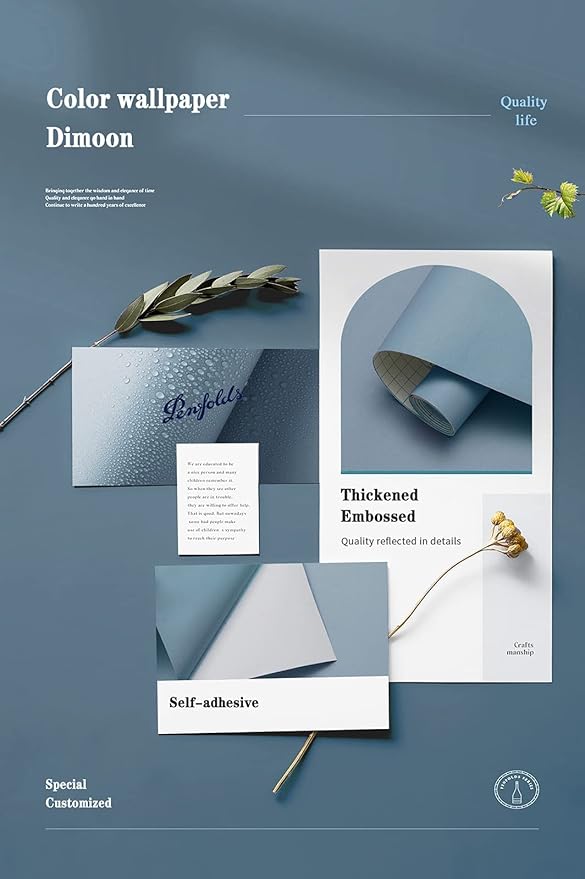 Dimoon 78.7''x17.7'' Blue Peel and Stick Wallpaper Contact Paper Modern Self Adhesive Wall Paper Removable Renter Friendly Textured Solid Color Shelf Cabinet Vinyl Roll (78.7''x17.7'',Blue Grey)