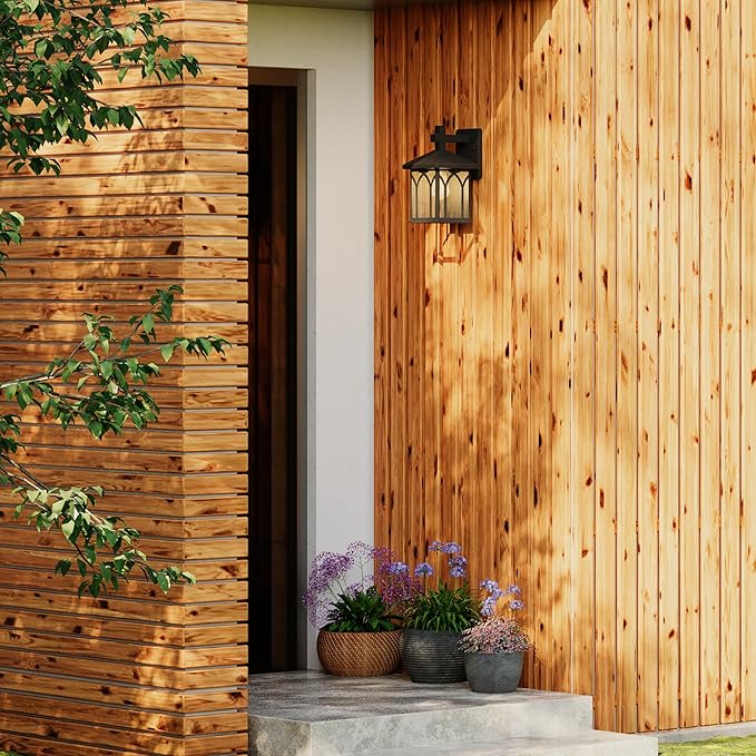 - Flat Black finish frame and backplate. Steel construction. Seeded glass creates a diffused glow for outdoor space.