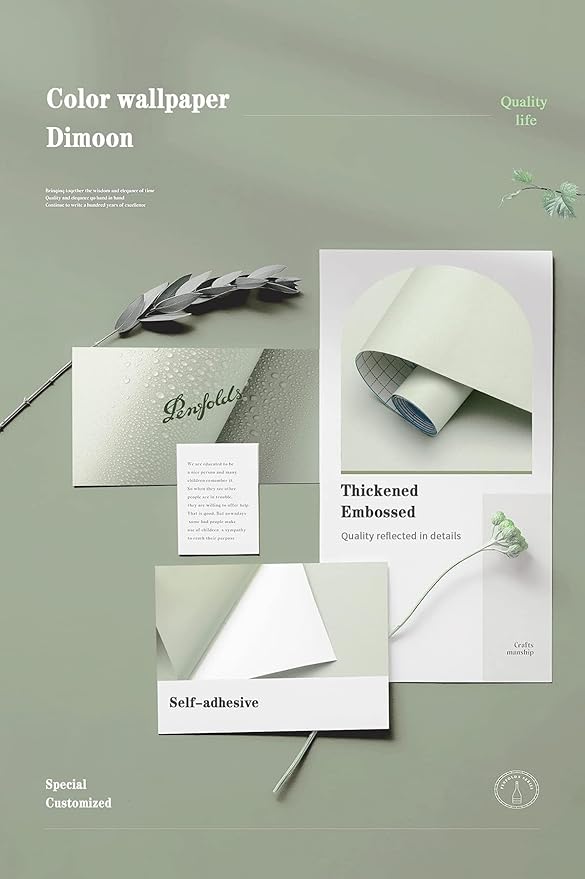 Dimoon 236''x17.7'' Green Peel and Stick Wallpaper Contact Paper Modern Self Adhesive Wall Paper Removable Renter Friendly Textured Solid Color Shelf Cabinet Vinyl Roll (236''x17.7'',Palegreen)