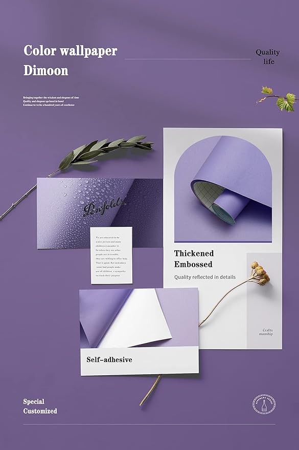 Dimoon 118''x17.7'' Purple Peel and Stick Wallpaper Contact Paper Modern Self Adhesive Wall Paper Removable Renter Friendly Textured Solid Color Shelf Cabinet Vinyl Roll (118''x17.7'',Dark Purple)