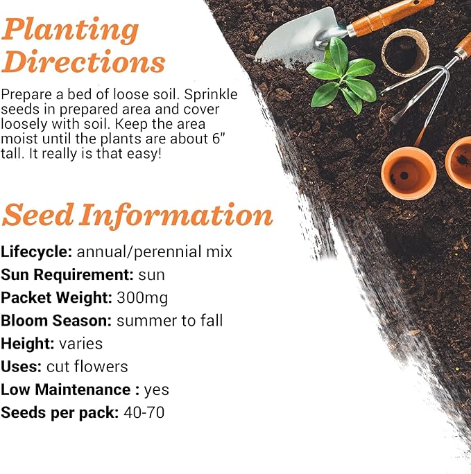 - SAFE SEED: Bentley Seed Co. sells only Non-GMO seeds that are safe for you and your family. You can start an outdoor or indoor garden with these seeds for planting flowers. You'll grow a colorful bunch of flowers that are perfect to cut for a bouquet.