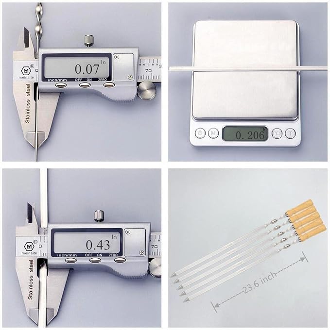 - PRECAUTIONS: 1. Children should be supervised by adults when they are used. Stainless steel skewers are very sharp. 2. After useing, just let these grilling skewers sit in warm water, hand wash with gentle detergent or threw them in dishwasher, wipe away water and keep in dry place, and they’ll come out as new. It is recommended to store the barbecue stick in a cool, dry and ventilated place. 3.We Manufacturing products attentively,The BBQ skewers are large, please buy it carefully
