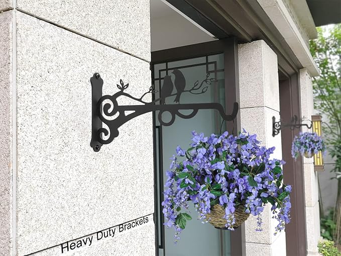 - 【Long Lasting Quality】Brackets for hanging baskets outdoor are made from solid iron with hand-coated black finish, waterproof and anti-rust.