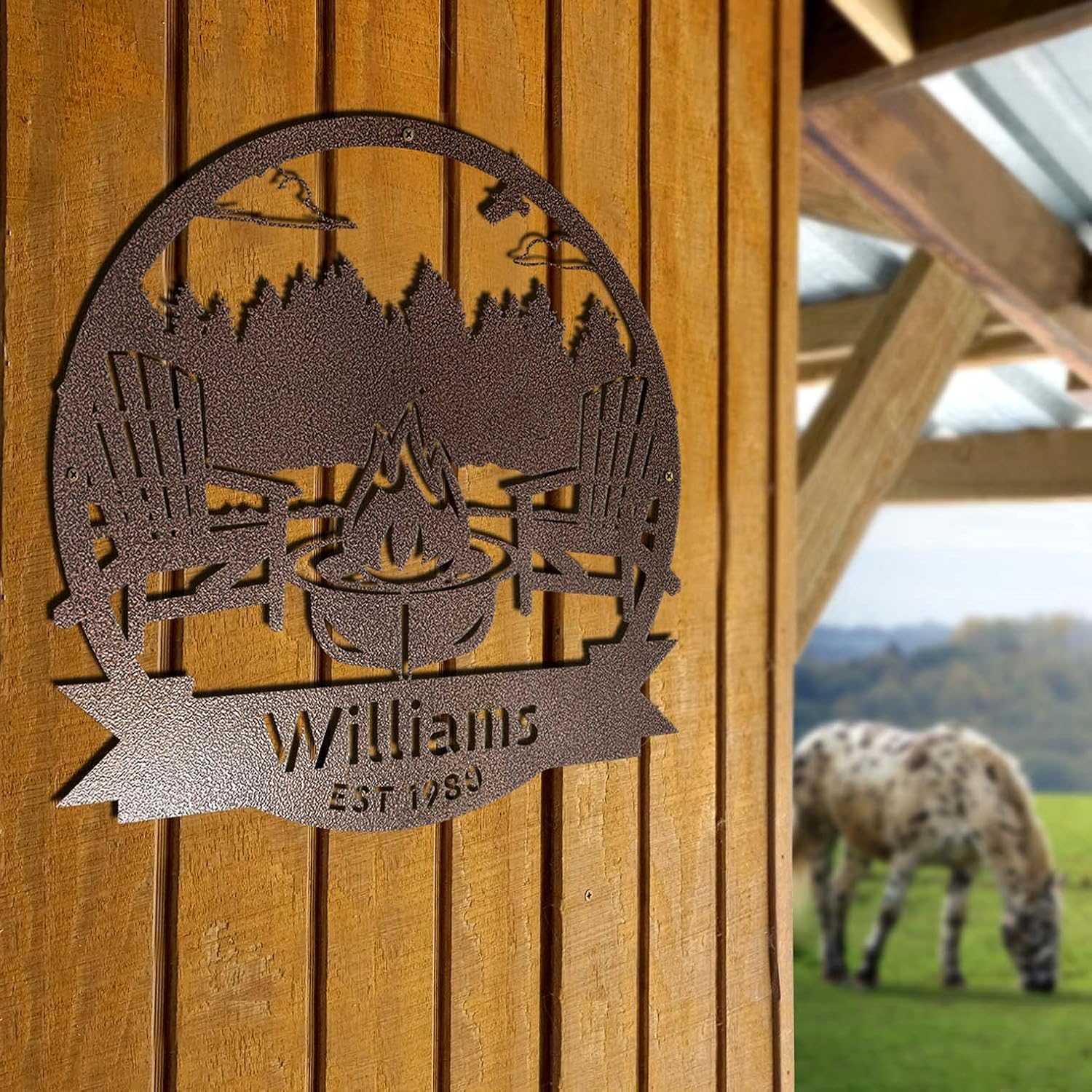 RealSteel Forest Campfire Monogram, Custom Home & Wall Dรฉcor, Personalized Sign, Outdoor Campsite, for Backyards, Deer Leases, Campgrounds, and Fire Pit area