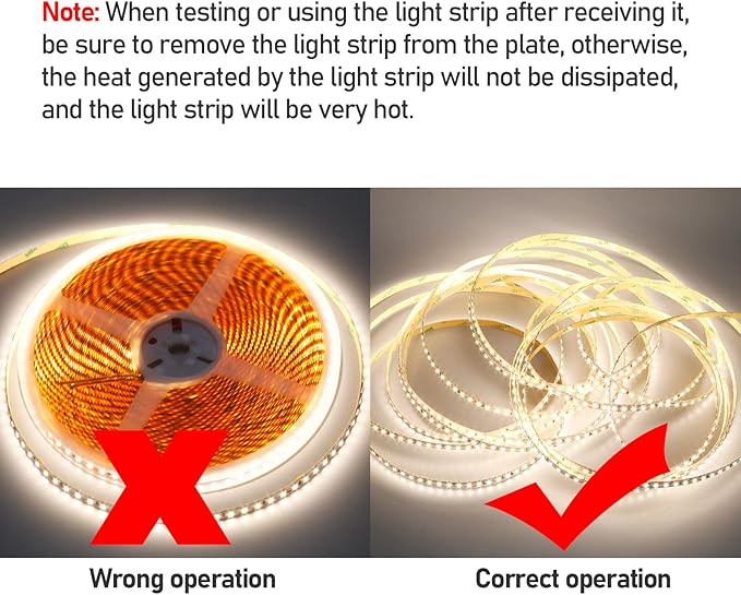 - 【24V LED Strip】The working voltage is 24V, The 24V light strip is 30% more efficient than the 12V light strip. It is Touchable to children and pets.To let it work, you need to buy a 24V DC Power supply, which is not included.It is recommended to use at least 24V 6A power supply for power supply.