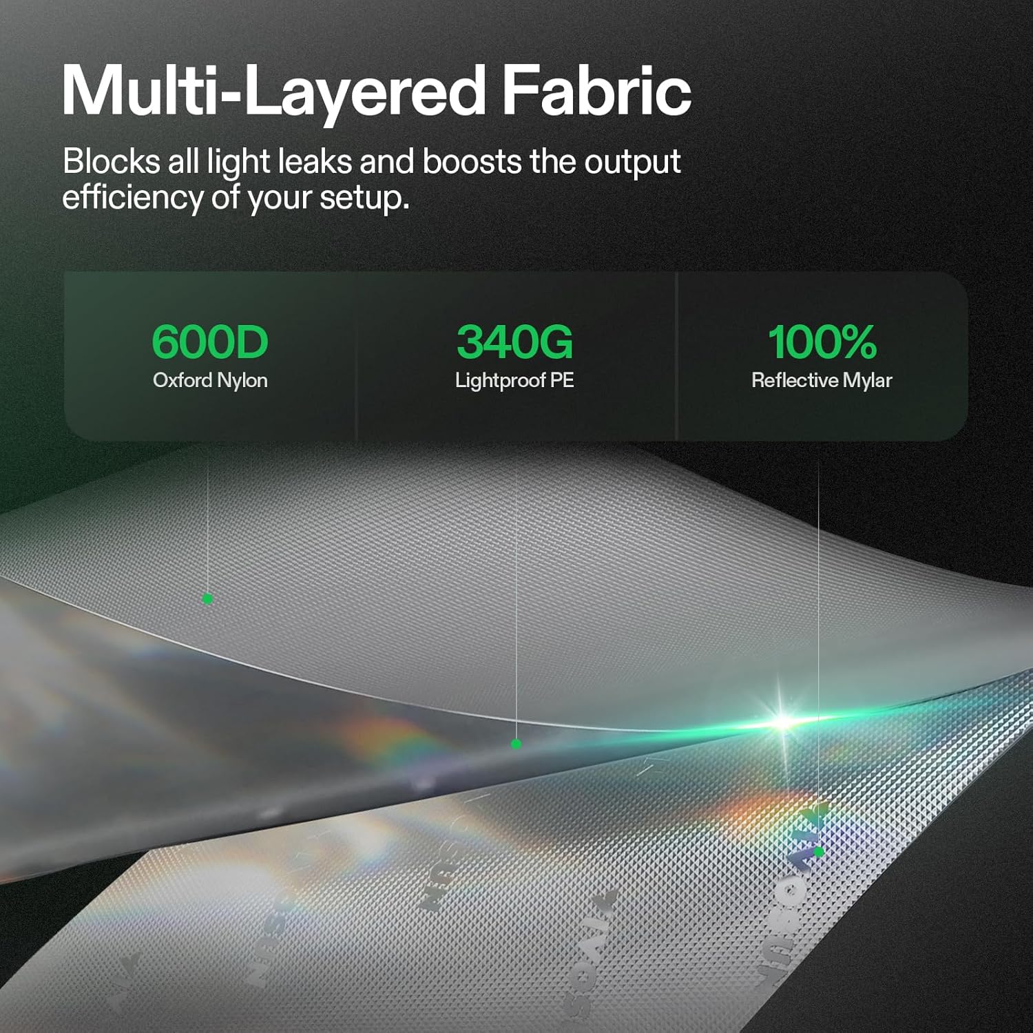 - 100% High Reflectivity: High density 600D Oxford fabric prevents light leakage and keeps your grow area well-insulated; The interior walls, ceiling, and floors are all lined with 100% diamond reflective mylar for multidimensional lighting