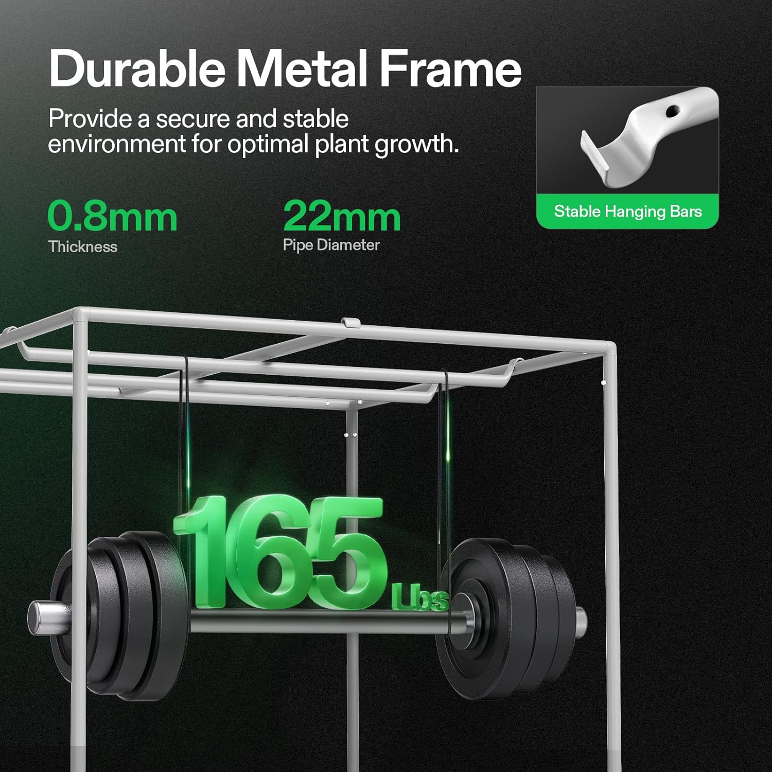 - Sturdy Frame & Strong Zipper: The thickened 22mm poles and durable metal frame enhance the overall load-bearing capacity, up to 165 lbs.; The strong zippers and tightly reinforced seals prevent light seepage and maximize the reflectivity of usable light