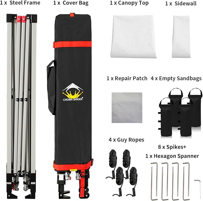 - STO’ N GO SYSTEM - Our lift-free system makes collapsing, storing, and transporting the 10x10 tent a breeze. The 10x10 tents can be stored with the fabric attached, with a specialized pocket for 4 sandbags, 8 stakes, and 4 guy ropes. Integrated wheels in the feet allow easy movement even when the instant shelter tent is set up, by simply lifting the side without wheels. This feature is especially useful for quick setup and takedown at locations like the patio or sports events
