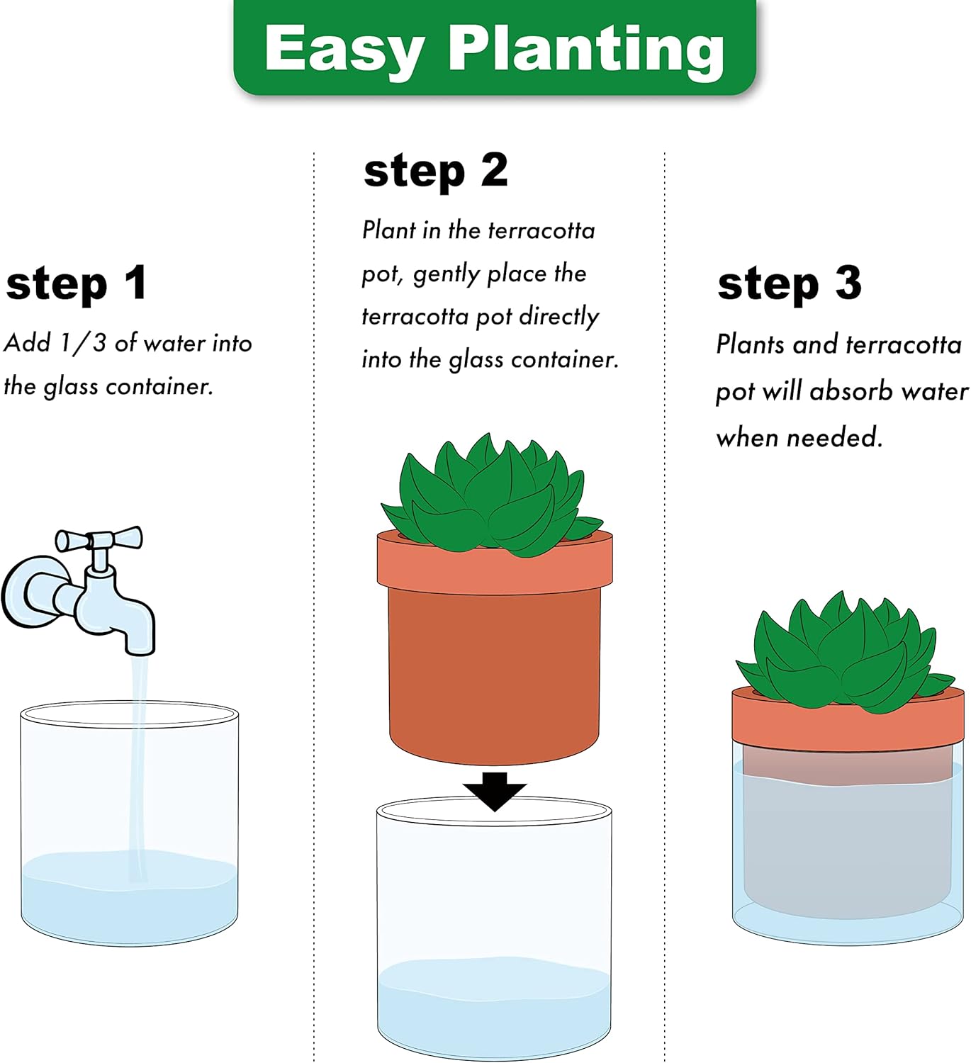 - Self-Watering System: The bottom quarter of the terracotta pot is unglazed, allowing plants to absorb water through the pot walls.