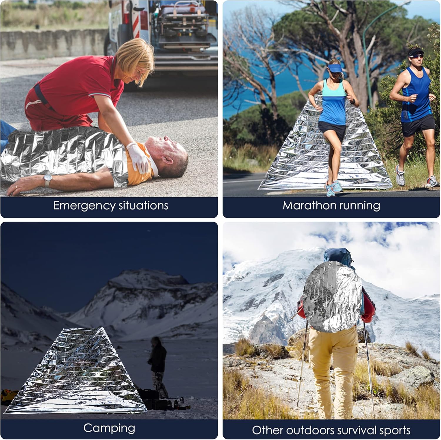 - Application scenario:Reflective mylar is suitable for garden greenhouse,sports warm,outdoor survival,natural disasters,accidents cover the body,etc.
