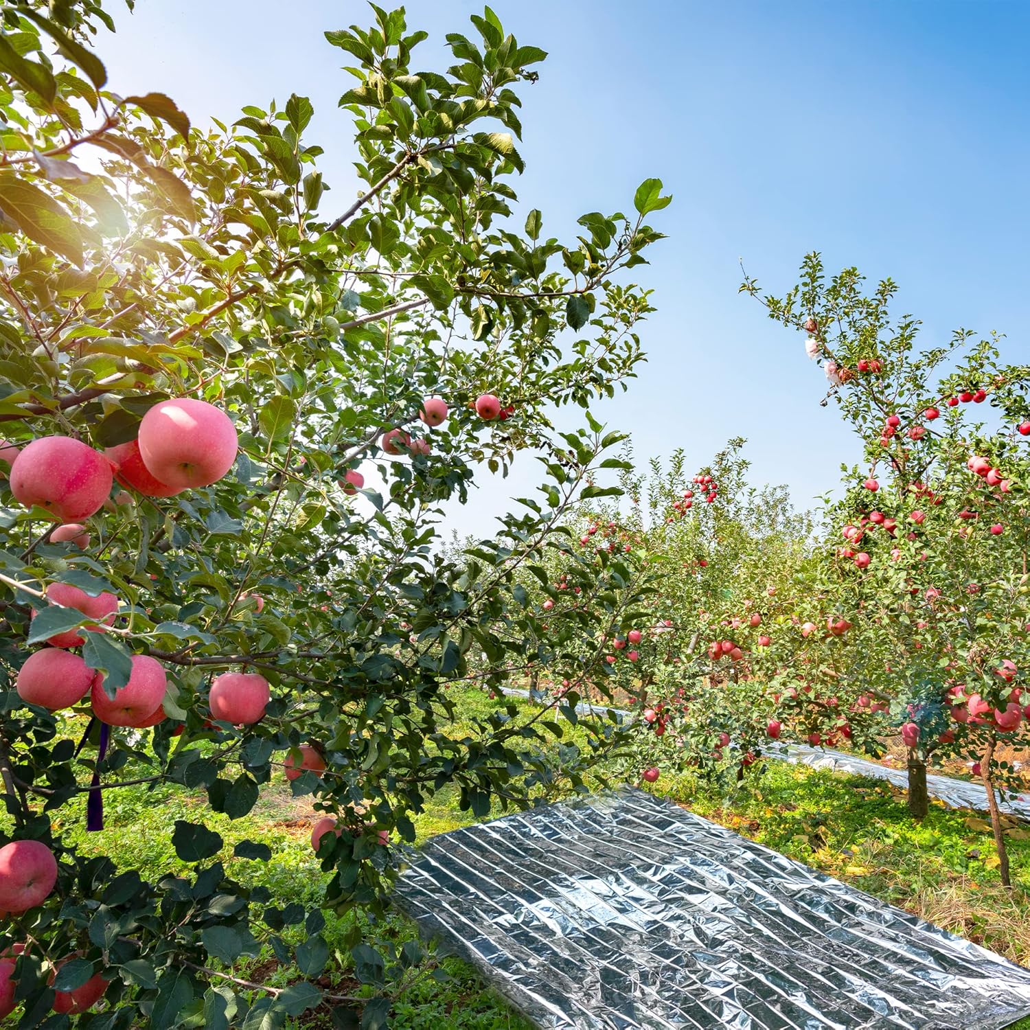 - Operating principle:Reflective film have double-sided reflection ability,it can effectively reflects the light of 95%,by reducing the"focus"of light scattered your light,let it evenly onto your plant,so as to promote the growth of plants.