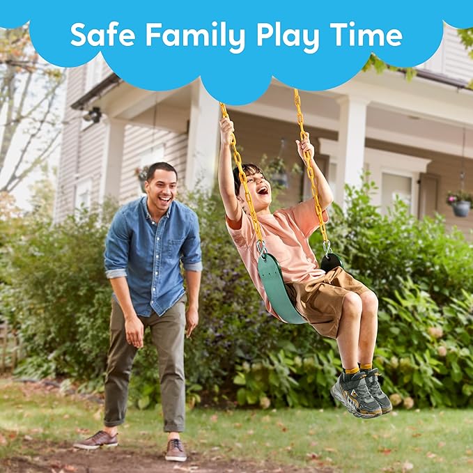 - COMPREHENSIVE SET. Our outdoor playset kit features two lush green extreme duty swing seats and a heavy-duty green ring/trapeze. Each swing set kit supports up to 300 pounds when attached to a heavy duty swing hanger, allowing parents to swing alongside their children.