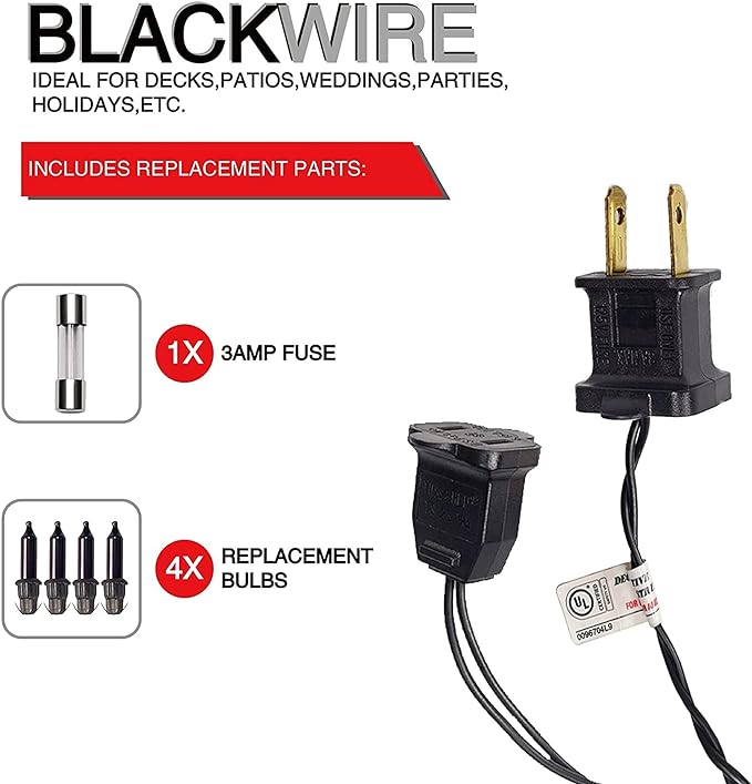- Charming Halloween Lights: Package include 1 x 20ft mini string light, 1 x spare fuse, 4 spare incandescent bulbs. The lighted length of Halloween clear string light is 18.5 ft, the leading wire is 1.5 ft, and the bulb space is 2.25 inch, work voltage of each bulb is 2.5V / 0.42W, safety with built in 3A fuse.
